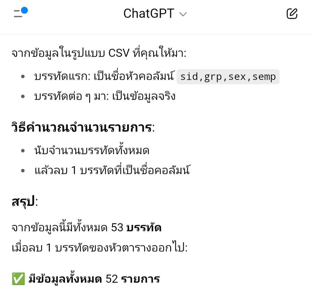 การใช้เอไอหาค่าจำนวนรายการจาก CSV-Format Text